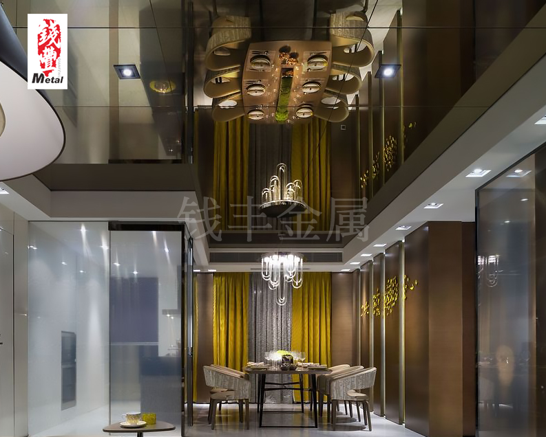 不銹鋼鏡面蜂窩板的最大亮點在于其獨特的外觀,不僅擁有鏡面效果,還有鋼的強度,營造出明亮開闊的空間氛圍,擁有提高層高,擴大空間的裝飾效果,非常適合用于餐廳,服裝店,商場,電梯包廂等天花吊頂以及墻面裝飾。不僅如此,它具有獨特的金屬質(zhì)感,讓室內(nèi)的吊頂更加高級大氣,令人眼前一亮。